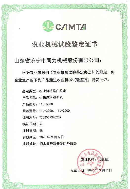 熱烈祝賀山東省濟(jì)寧市同力機(jī)械股份有限公司11J-6000、11J-3000、11J-2000產(chǎn)品通過了山東省農(nóng)機(jī)鑒定站的農(nóng)業(yè)機(jī)械推廣鑒定,獲得了山東省農(nóng)業(yè)機(jī)械試驗(yàn)鑒定證書。